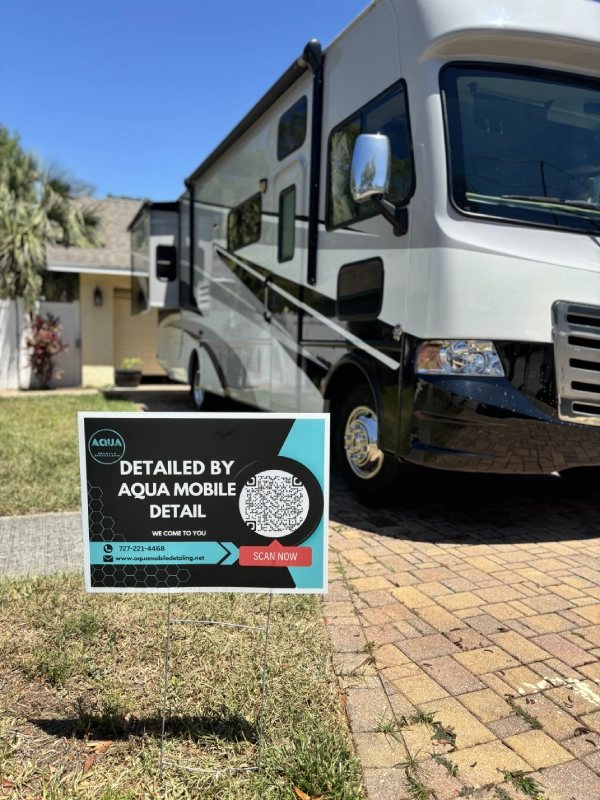 At Aqua Mobile Detailing, we specialize in providing a spotless shine with comprehensive detailing services directly to your location. We offer packages tailored to RVs, Campers, & Fifth Wheel exterior washing, waxing, polishing, ceramic coatings (optional) and complete detailing.